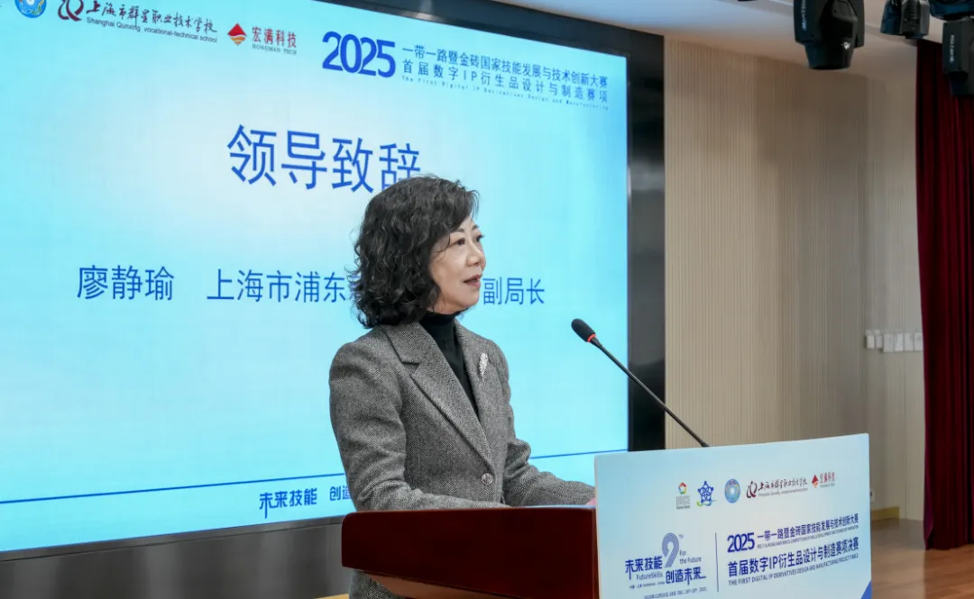 上海市浦东新区教育局副局长廖静瑜在致辞中表示,本届数字IP衍生品设计与制造赛项将创意设计、数字技术与智能制造连接在一起,直面市场需求,为青年才俊们搭建了激发创意、锤炼技能、实现价值的广阔舞台。她希望参赛选手们既能扎根本民族文化的肥沃土壤,又能融汇不同文明的璀璨精华,创作出具有文化底蕴、科技魅力和市场潜力的精彩作品,展现新时代技能青年的卓越风采。