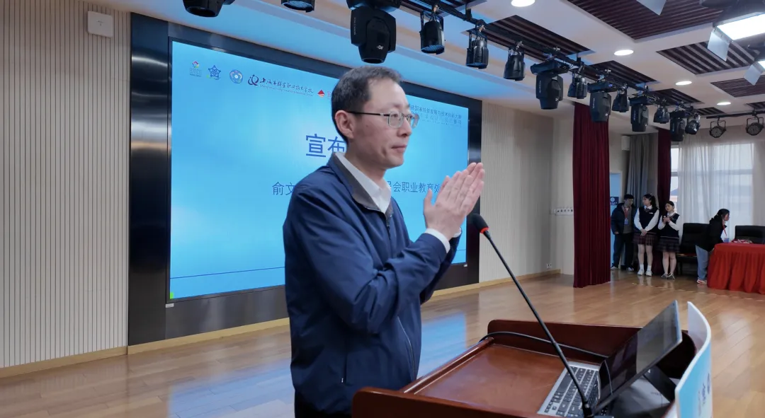 △上海市教育委员会职业教育处副处长俞文达宣布比赛闭幕